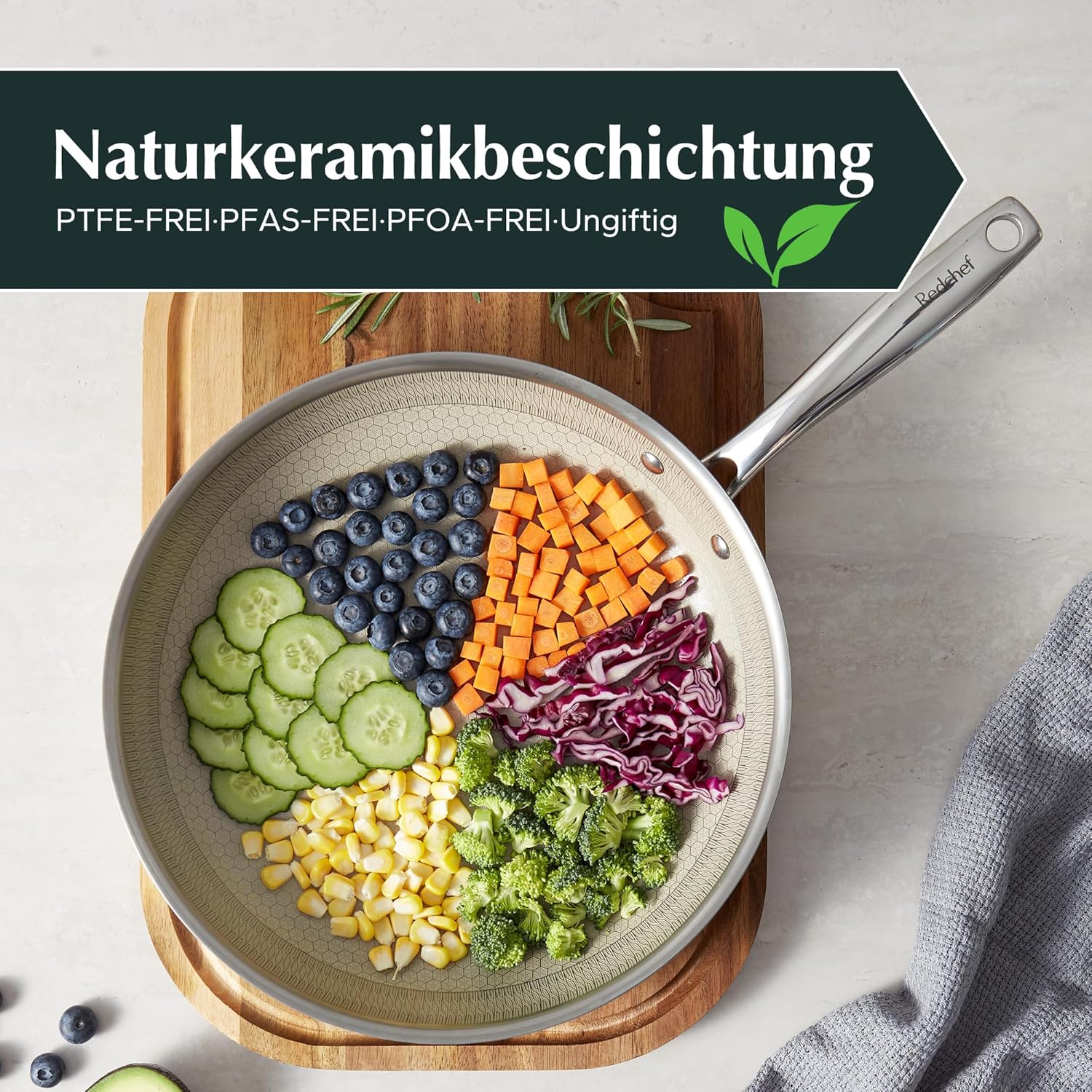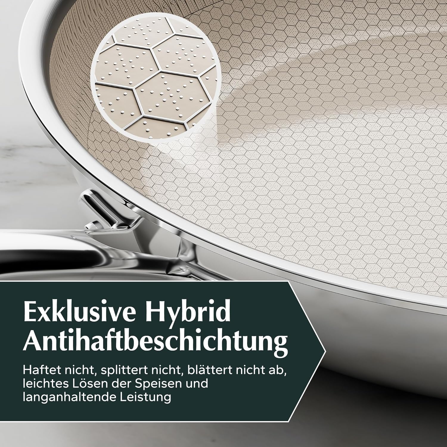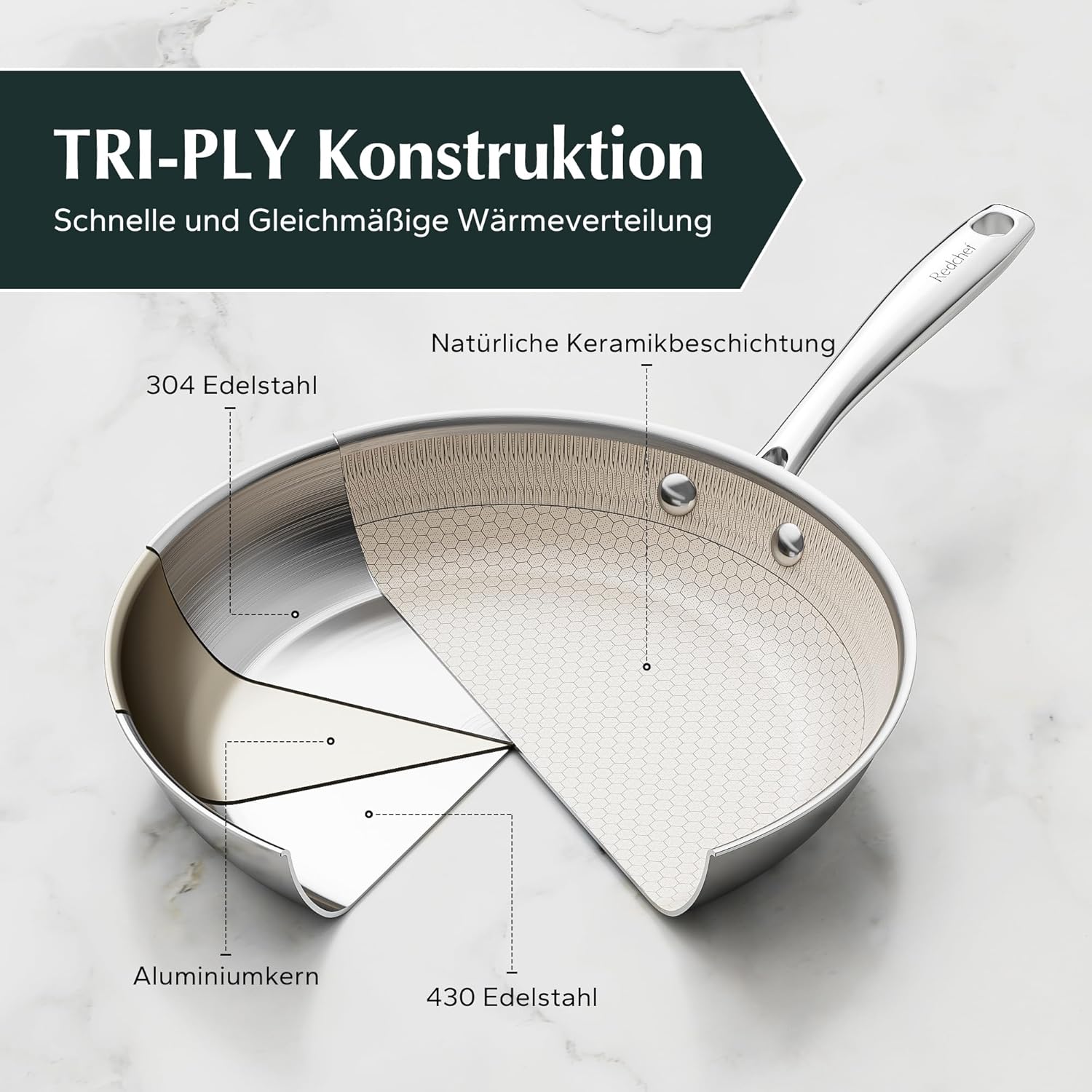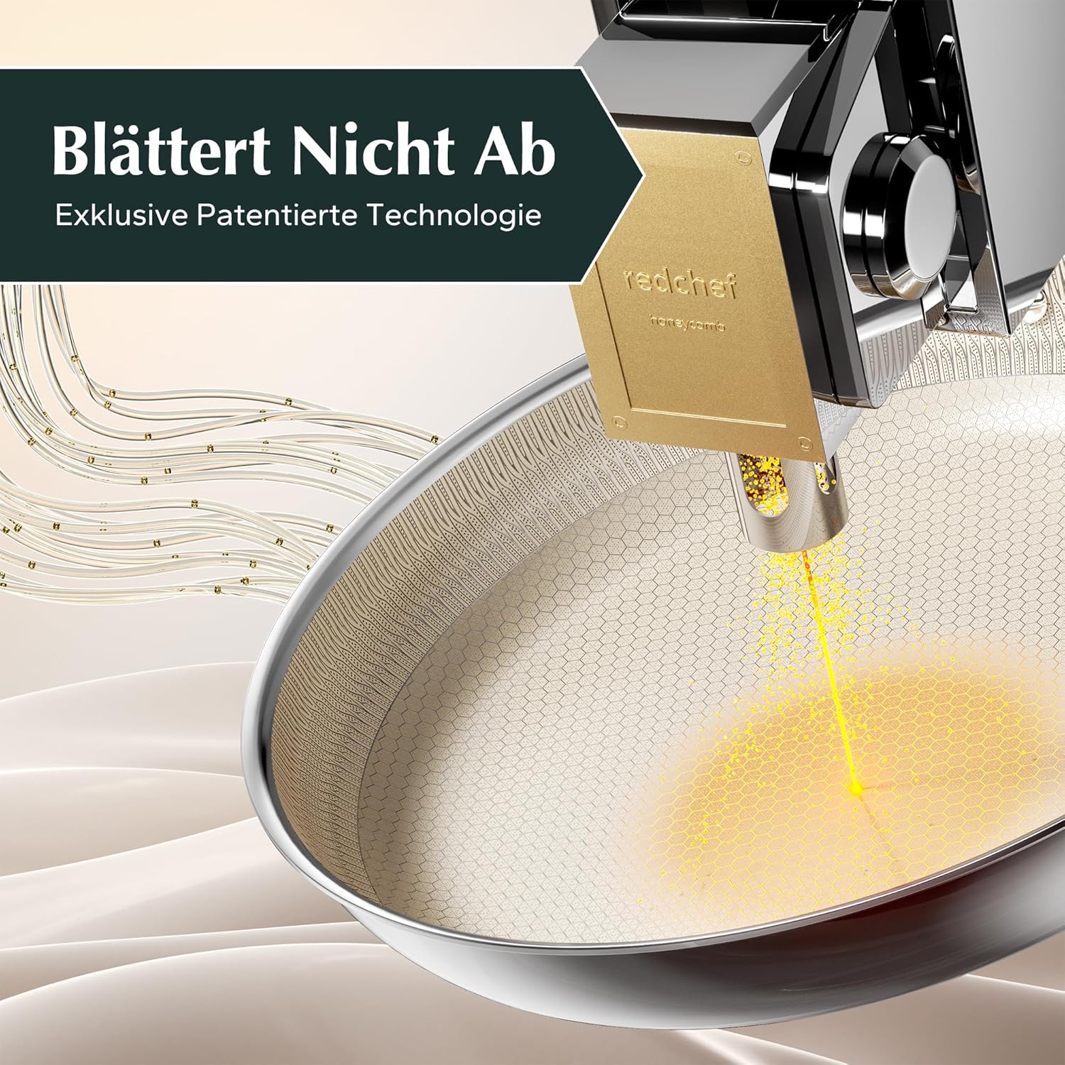 Redchef Honeycomb – Комплект от 3 тигани 20-24-28см Неръждаема стомана Hybrid Ceramic Beige