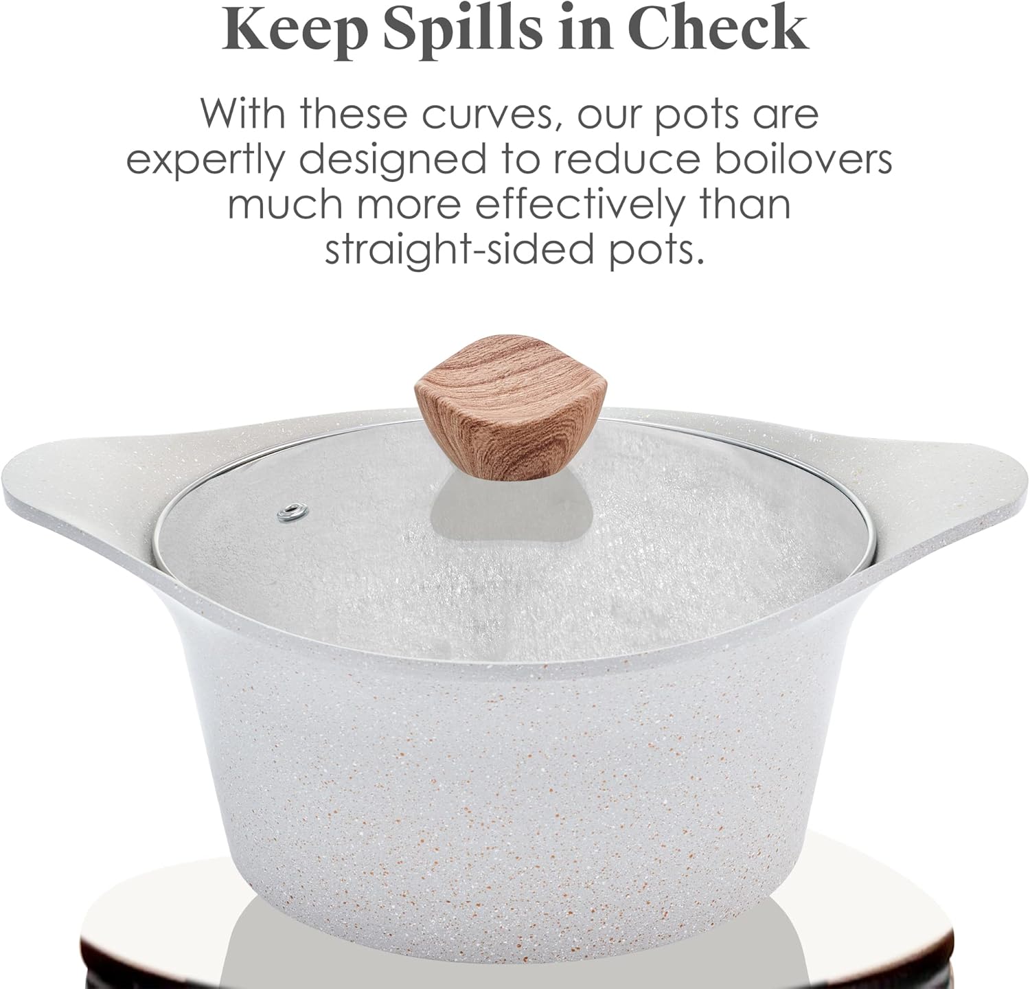 Съдържание на комплекта: Тенджера с диаметър 24 см е с дължина 12 см и вместимост 4,2 литра. Тенджерата с диаметър 28 см е с височина 8,5 см и вместимост 4,7 литра.