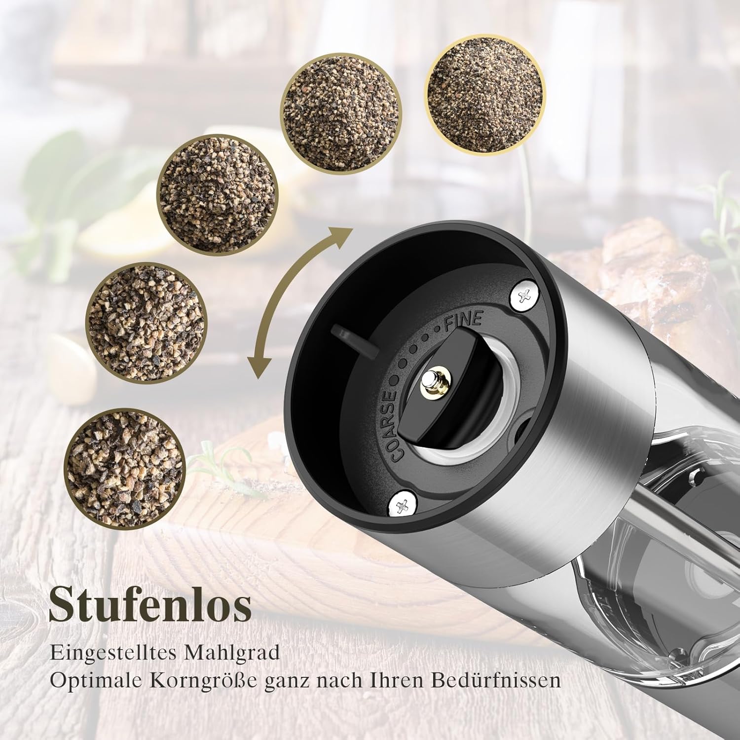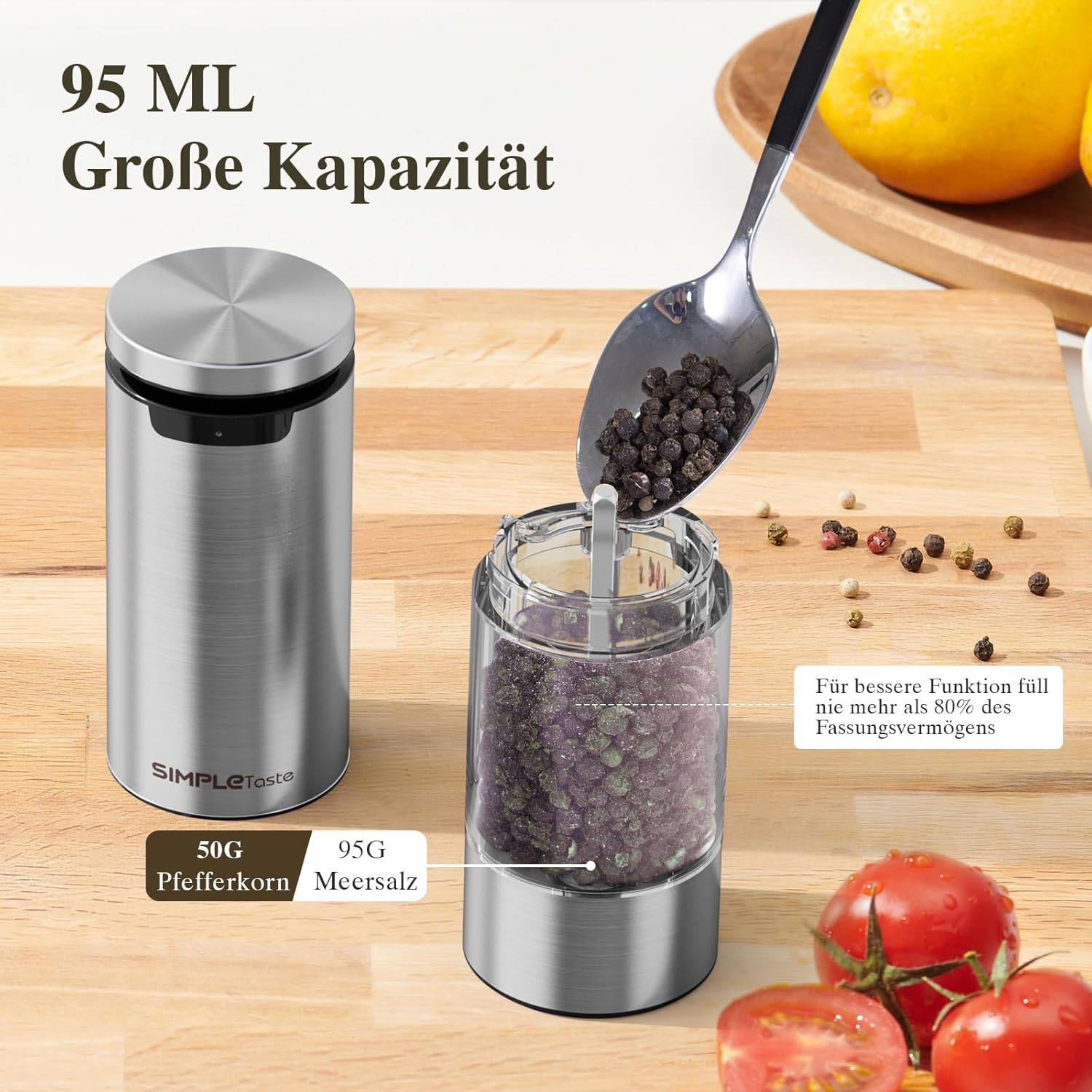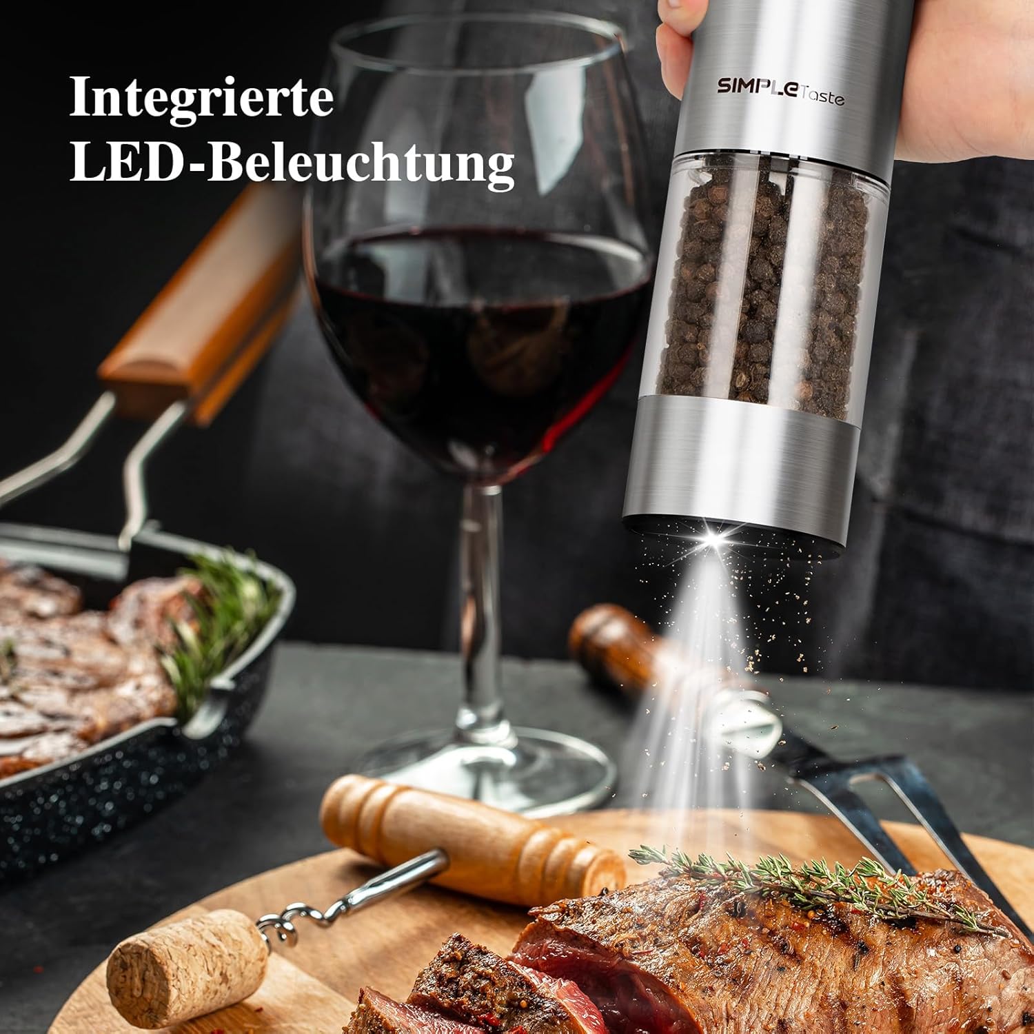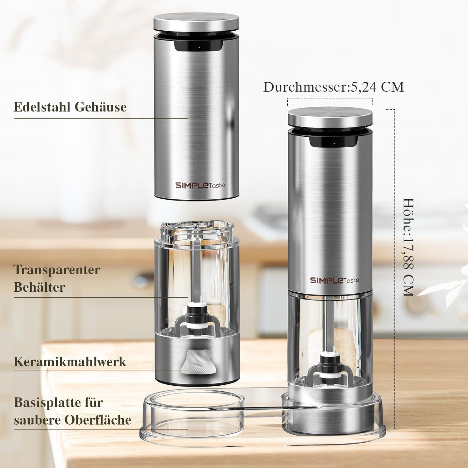 SIMPLETASTE – USB презареждаща се Комплект от 2 електрически мелнички за сол и черен пипер
