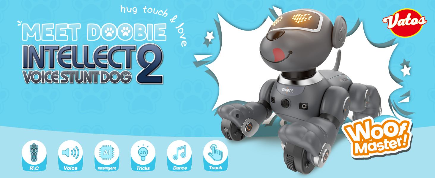 / VATOS Куче робот Управление с глас и дистанционно управление Grey