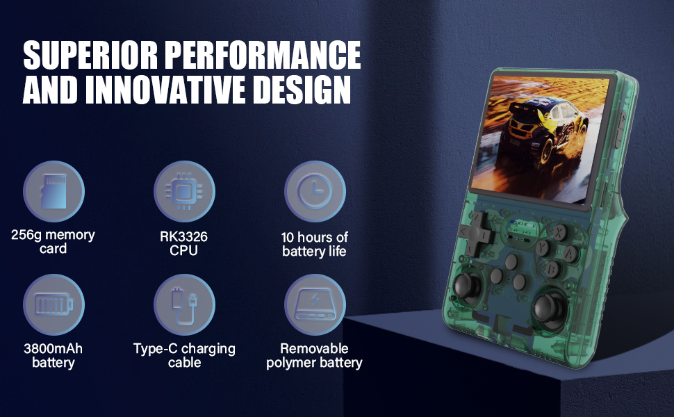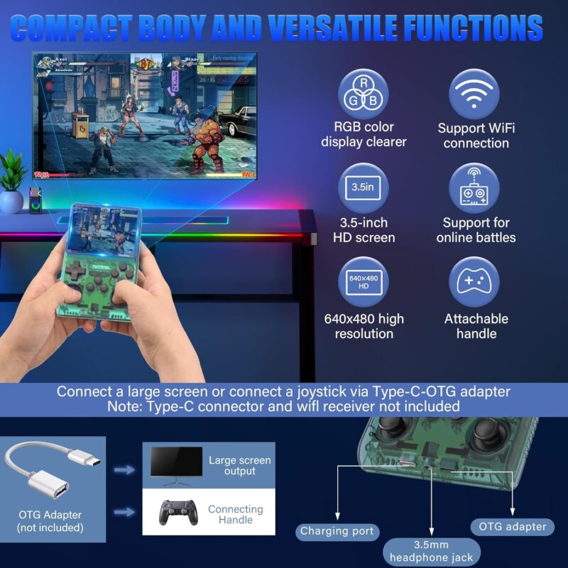 / VELPAX R40S Linux System Ретро ръчна конзола за игри 256GB 3.5 инчов Green
