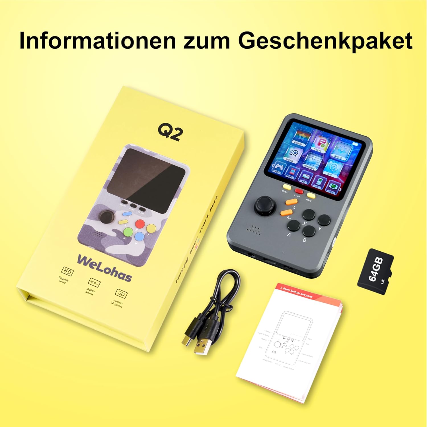 / WeLohas Q2 Ретро ръчна конзола за игри 10 000+ видеоигри 64GB 3 инчов HD екран Black