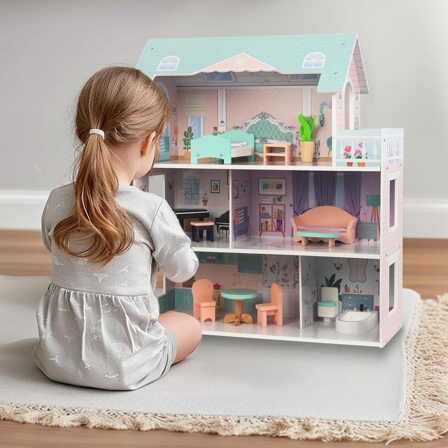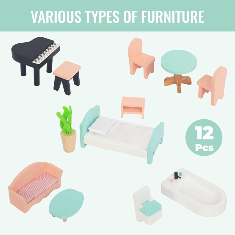 количество за WOODENFUN Къща за кукли с комплект мебели