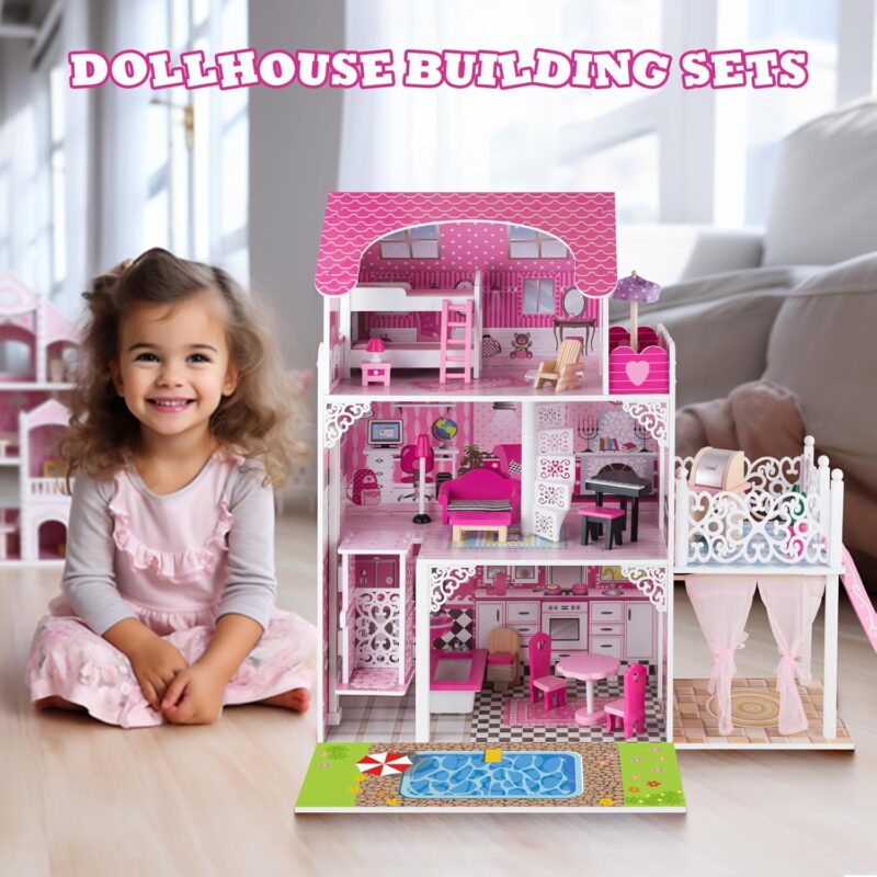 количество за WOODENFUN Къща мечта за кукли с комплект мебели